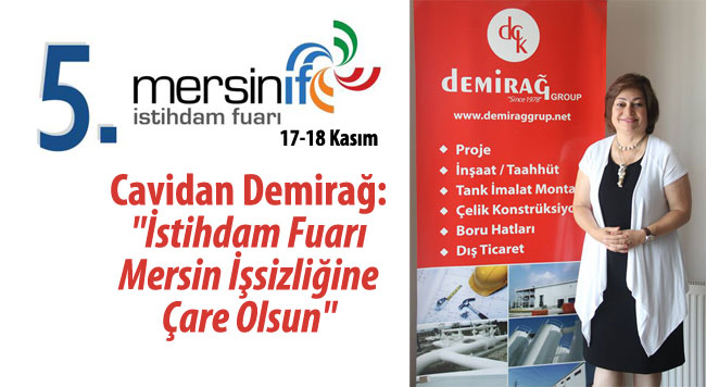 İŞKUR İnsan Kaynakları çalışma grubu üyesi aynı zamanda Demirağ Group Genel Koordinatörü Cavidan Demirağ, Mersin’deki işsizlik sorununa dikkat çekerek, 17-18 Kasım tarihlerinde Mersin Kongre ve Sergi Sarayında gerçekleştirilecek olan “5. Mersin İnsan Kaynakları ve İsthidam Fuarı”nın az bir oranda da olsa işsizliğe kısa vadede çözüm üretebileceğini ve bir çok işsize istihdam sağlanabileceğini bildirdi.